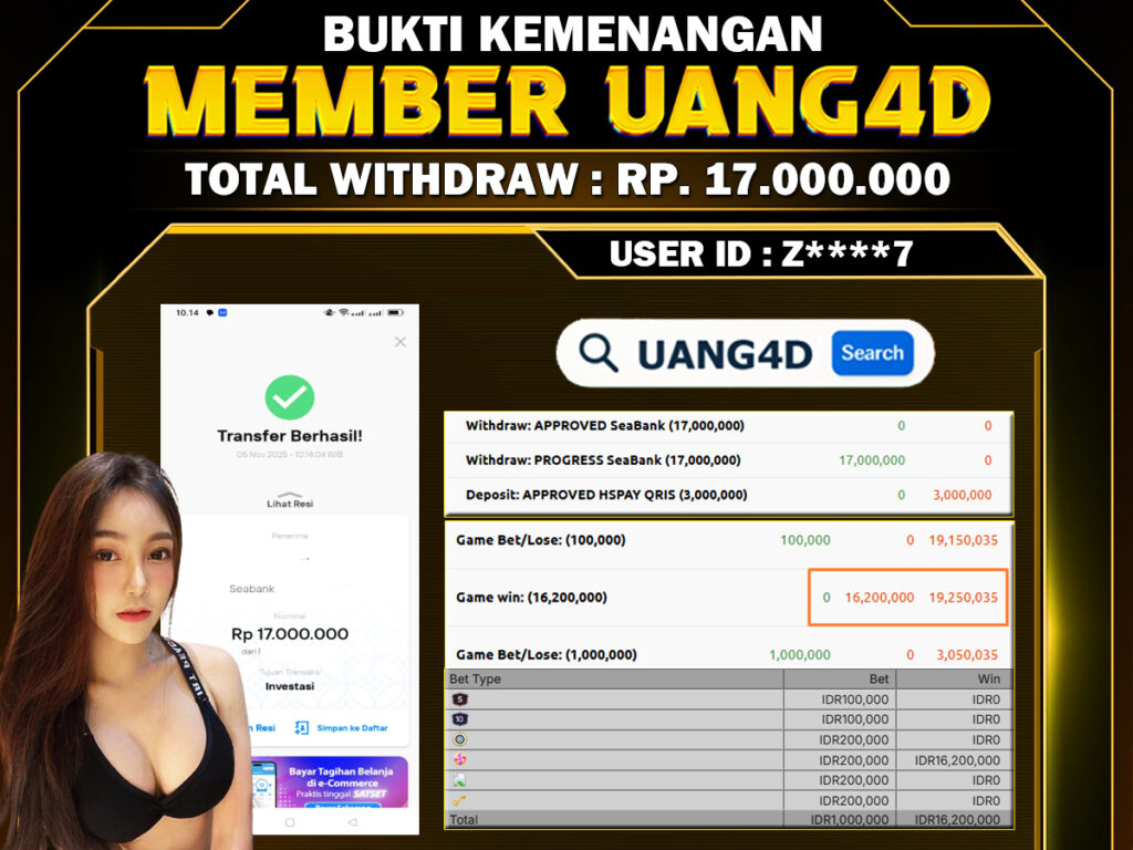 Setiap hari, member UANG4D berhasil meraih jackpot besar dari berbagai macam permainan livecasino ternama yang kami sediakan, seperti Roullete, Dragon & Tiger, Qiu Qiu dan masih banyak lagi. Kami secara rutin menampilkan bukti screenshot atau rekapan kemenangan yang berhasil diraih, mulai dari kemenangan ratusan ribu hingga puluhan juta rupiah. Semua slip kemenangan ini kami hadirkan untuk membuktikan bahwa di UANG4D, peluang menang itu nyata.