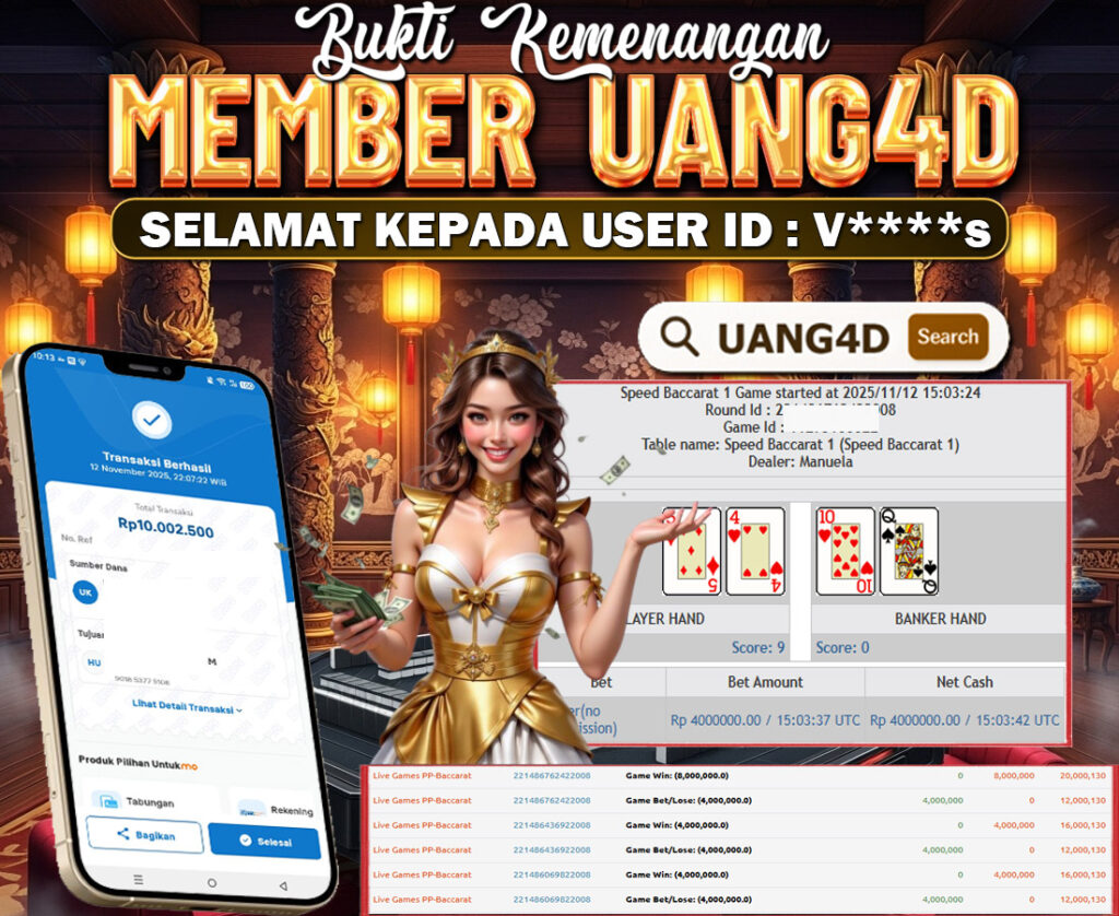 UANG4D dikenal sebagai situs terpercaya yang selalu menghadirkan pengalaman bermain slot online yang aman, fair, dan berlisensi resmi. Di sini, kami tidak hanya sekadar memberikan janji, tapi bukti nyata berupa slip kemenangan yang dapat Anda lihat secara langsung.