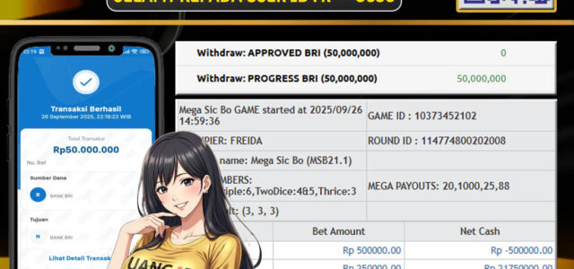 JACKPOT Live Games PP-Live game PP Mega Sicbo 27 September 2025 Kemenangan Live Casino, Bukti Kemenangan Live Casino, Kemenangan Live Casino Fortune Roulette, Menang Live Casino, Live Casino Terpercaya, Situs Aman Terpercaya, WD Berapapun Pasti DI Bayar Tuntas, Maxwin Live Casino Online.