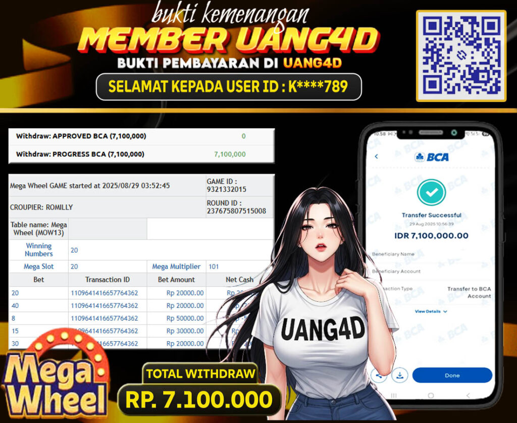Setiap hari, member UANG4D berhasil meraih jackpot besar dari berbagai macam permainan livecasino ternama yang kami sediakan, seperti Roullete, Dragon & Tiger, Qiu Qiu dan masih banyak lagi. Kami secara rutin menampilkan bukti screenshot atau rekapan kemenangan yang berhasil diraih, mulai dari kemenangan ratusan ribu hingga puluhan juta rupiah. Semua slip kemenangan ini kami hadirkan untuk membuktikan bahwa di UANG4D, peluang menang itu nyata.