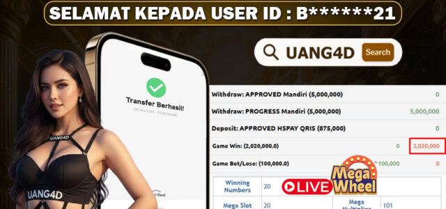 Setiap hari, member UANG4D berhasil meraih jackpot besar dari berbagai macam permainan livecasino ternama yang kami sediakan, seperti Roullete, Dragon & Tiger, Qiu Qiu dan masih banyak lagi. Kami secara rutin menampilkan bukti screenshot atau rekapan kemenangan yang berhasil diraih, mulai dari kemenangan ratusan ribu hingga puluhan juta rupiah. Semua slip kemenangan ini kami hadirkan untuk membuktikan bahwa di UANG4D, peluang menang itu nyata.