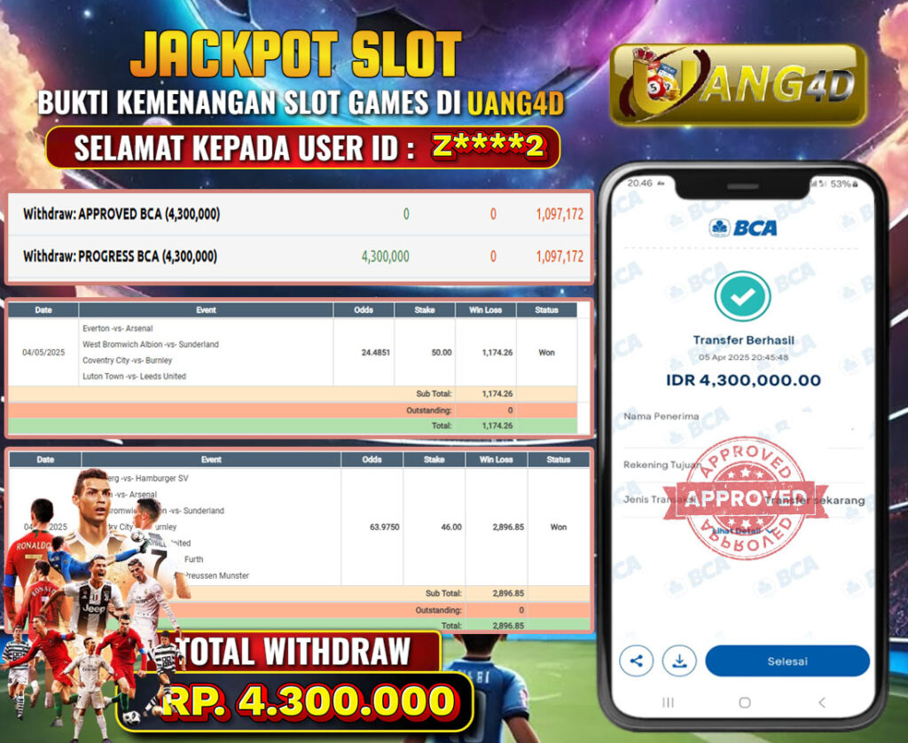 UANG4D JACKPOT PARLAY 06 APRIL 2025, Kemenangan Slot, Bukti Kemenangan Slot, Kemenangan Slot Pragmatic Play, Menang Slot online, Slot Gacor, Situs Aman Terpercaya, Withdraw Berapapun Pasti DI Bayar Tuntas, Maxwin Slot Online.