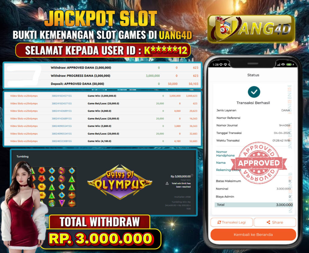 UANG4DJACKPOT SLOT GACOR GETES OF OLYMPUS 04 APRIL 2025, Jackpot Slot, Kemenangan Slot, Bukti Kemenangan Slot, Kemenangan Slot Pragmatic Play, Menang Slot online, Slot Gacor, Situs Aman Terpercaya, WD Berapapun Pasti DI Bayar Tuntas, Maxwin Slot Online.