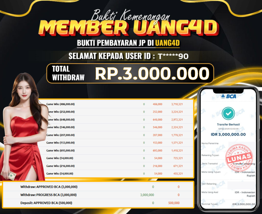 Jangan lewatkan kesempatan untuk meraih kemenangan besar. Daftar sekarang di UANG4D dan rasakan pengalaman bermain slot terbaik yang pernah ada! Putar gulungan, menangkan jackpot, dan jadilah bagian dari komunitas pemain sukses kami!