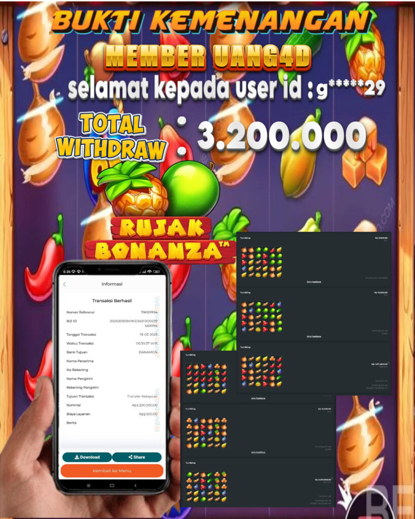 UANG4D– JACKPOT SLOT GACOR RUJAK BONANZA 19, MEI, 2025, Jackpot Slot, Kemenangan Slot, Bukti Kemenangan Slot, Kemenangan Slot Pragmatic Play, Menang Slot online, Slot Gacor, Situs Aman Terpercaya, WD Berapapun Pasti DI Bayar Tuntas, Maxwin Slot Online.