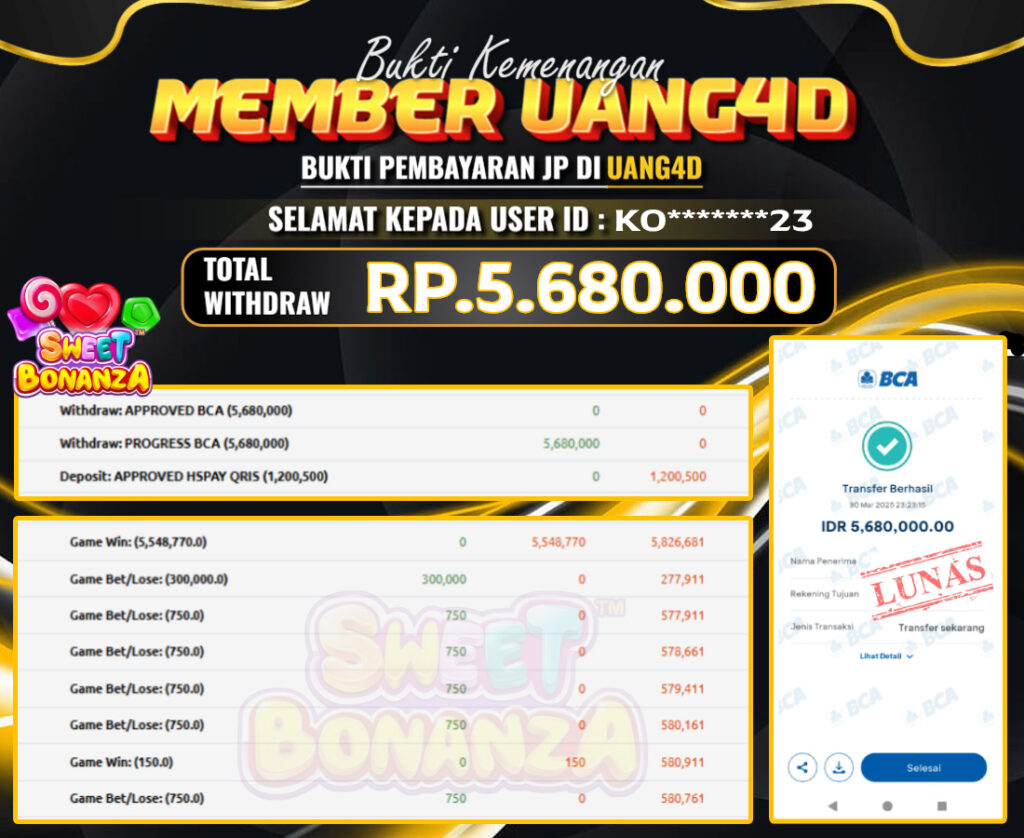 UANG4D– JACKPOT SLOT GACOR SWEET BONANZA, Jackpot Slot, Kemenangan Slot, Bukti Kemenangan Slot, Kemenangan Slot Pragmatic Play, Menang Slot online, Slot Gacor, Situs Aman Terpercaya, WD Berapapun Pasti DI Bayar Tuntas, Maxwin Slot Online.