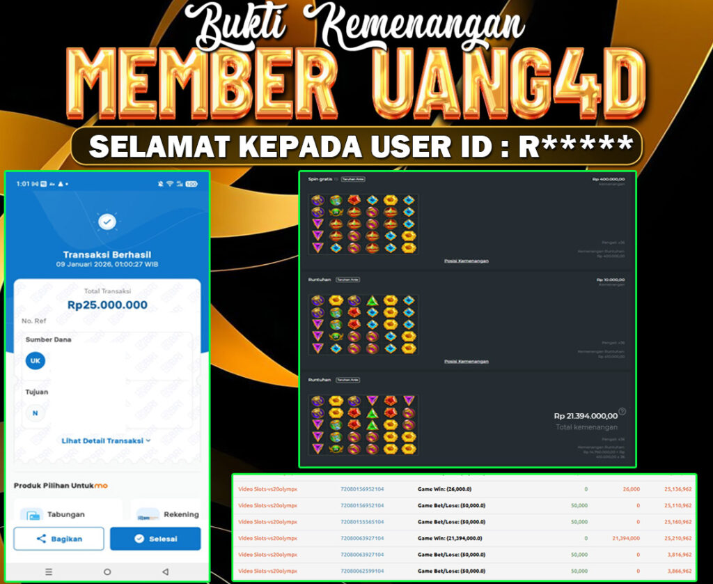 UANG4D JACKPOT SLOT GATES OF OLYMPUS 1000, 09 JANUARI 2026, Kemenangan Slot, Bukti Kemenangan Slot, Kemenangan Slot Pragmatic Play, Menang Slot online, Slot Gacor, Situs Aman Terpercaya, Withdraw Berapapun Pasti DI Bayar Tuntas, Maxwin Slot Online.