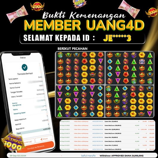UANG4D -JACKPOT SLOT Gates of Olympus (1000) 09 SEPTEMBER 2025 Kemenangan Slot, Bukti Kemenangan Slot, Kemenangan Slot Pragmatic Play, Menang Slot online, Slot Gacor, Situs Aman Terpercaya, Withdraw Berapapun Pasti DI Bayar Tuntas, Maxwin Slot Online.