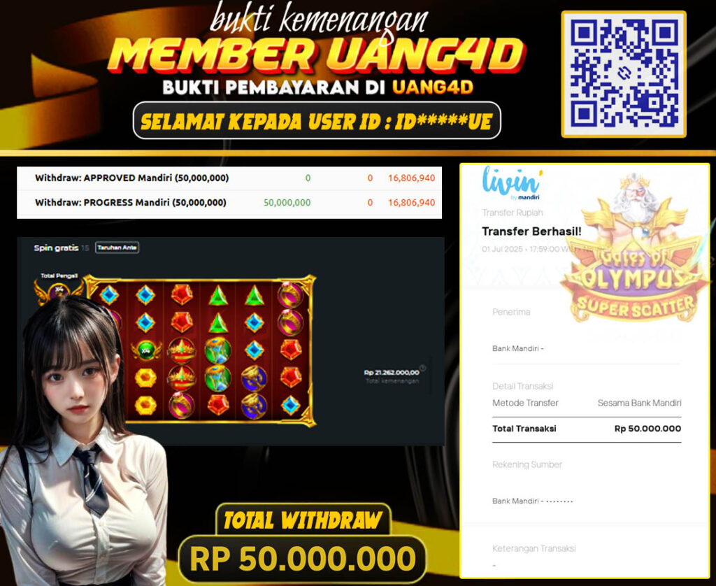 UANG4D JACKPOT SLOT Gates of Olympus Super Scatter 01 juli 2025, Kemenangan Slot, Bukti Kemenangan Slot, Kemenangan Slot Pragmatic Play, Menang Slot online, Slot Gacor, Situs Aman Terpercaya, Withdraw Berapapun Pasti DI Bayar Tuntas, Maxwin Slot Online.