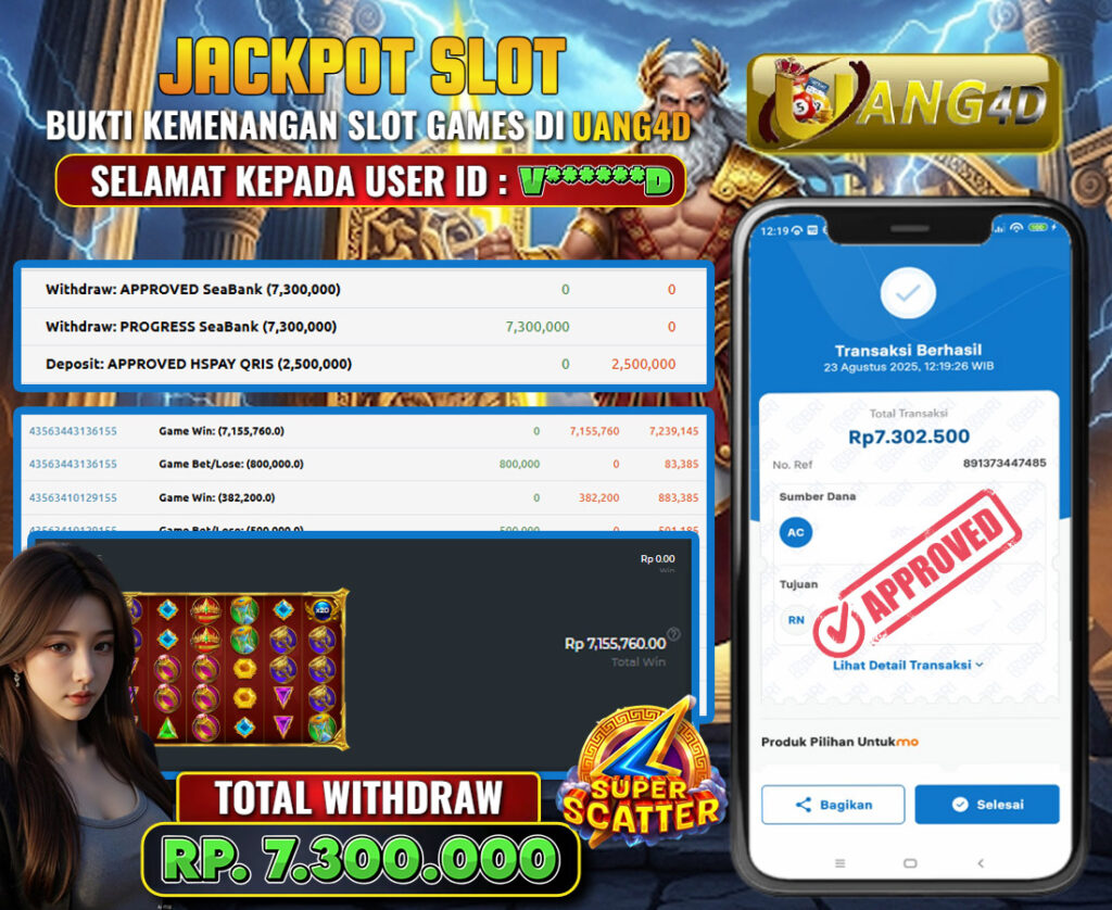 UANG4D –JACKPOT SLOT Gates of Olympus Super Sceter 23 Agustus 2025, Kemenangan Slot, Bukti Kemenangan Slot, Kemenangan Slot Pragmatic Play, Menang Slot online, Slot Gacor, Situs Aman Terpercaya, Withdraw Berapapun Pasti DI Bayar Tuntas, Maxwin Slot Online.