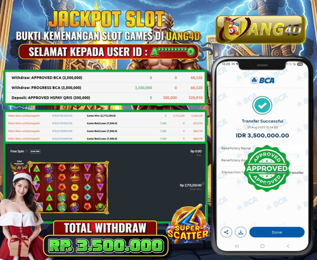 UANG4D –JACKPOT SLOT Gates of Olympus Super Sceter 25 Agustus 2025, Kemenangan Slot, Bukti Kemenangan Slot, Kemenangan Slot Pragmatic Play, Menang Slot online, Slot Gacor, Situs Aman Terpercaya, Withdraw Berapapun Pasti DI Bayar Tuntas, Maxwin Slot Online.