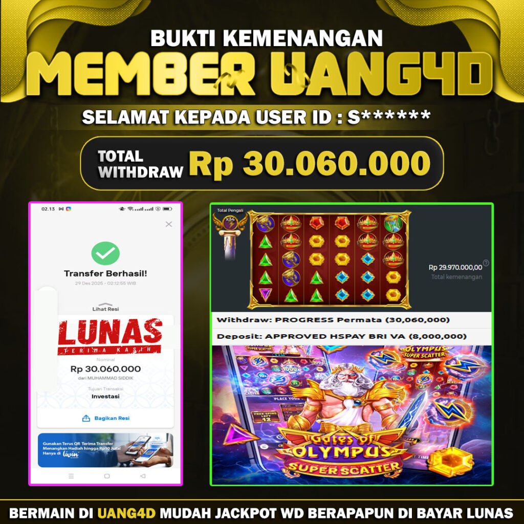 UANG4D –JACKPOT SLOT GATES OF OLYMPUS SUPER SCETER 29 DESEMBER 2025, Kemenangan Slot, Bukti Kemenangan Slot, Kemenangan Slot Pragmatic Play, Menang Slot online, Slot Gacor, Situs Aman Terpercaya, Withdraw Berapapun Pasti DI Bayar Tuntas, Maxwin Slot Online.