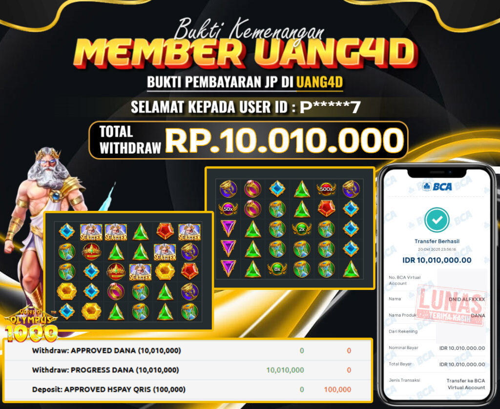 UANG4D –JACKPOT SLOT Gates of Olympus1000 21 Oktober 2025, Kemenangan Slot, Bukti Kemenangan Slot, Kemenangan Slot Pragmatic Play, Menang Slot online, Slot Gacor, Situs Aman Terpercaya, Withdraw Berapapun Pasti DI Bayar Tuntas, Maxwin Slot Online.