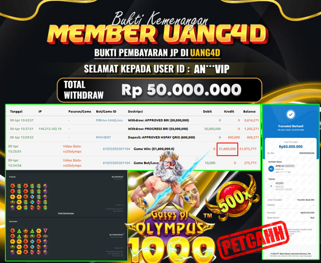 UANG4D JACKPOT SLOT OLYMPUS 09 APRIL 2025, Kemenangan Slot, Bukti Kemenangan Slot, Kemenangan Slot Pragmatic Play, Menang Slot online, Slot Gacor, Situs Aman Terpercaya, Withdraw Berapapun Pasti DI Bayar Tuntas, Maxwin Slot Online.