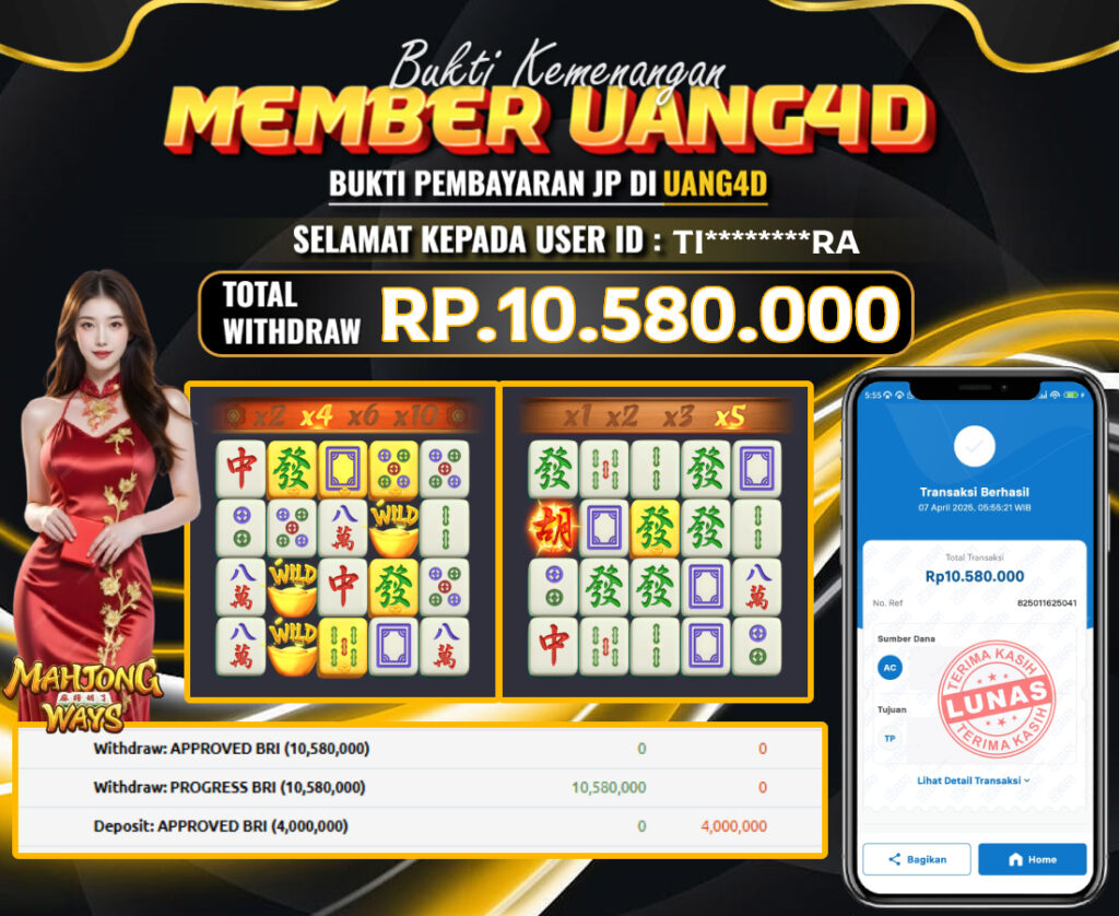 UANG4D JACKPOT SLOT MAHJONG WAYS 07 APRIL 2025, Jackpot Slot, Kemenangan Slot, Bukti Kemenangan Slot, Kemenangan Slot PG Soft, Menang Slot online, Slot Gacor, Situs Aman Terpercaya, Withdraw Berapapun Pasti DI Bayar Tuntas, Maxwin Slot Online.