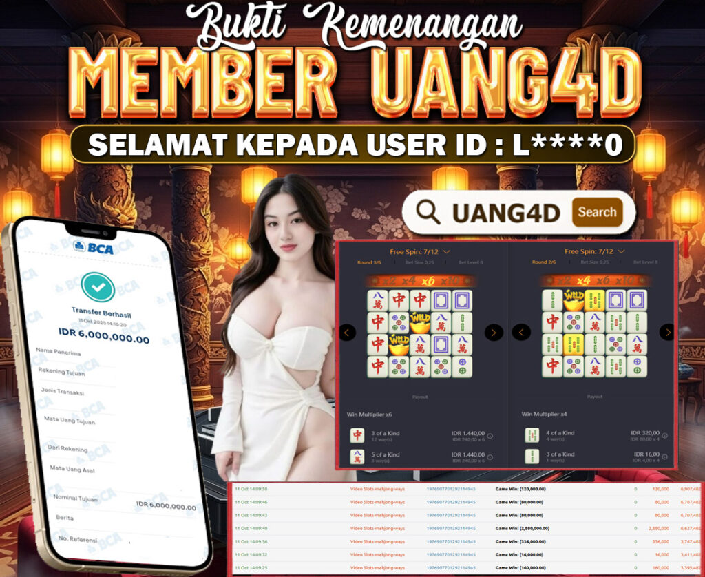 Jangan lewatkan kesempatan untuk meraih kemenangan besar. Daftar sekarang di UANG4D dan rasakan pengalaman bermain slot terbaik yang pernah ada! Putar gulungan, menangkan jackpot, dan jadilah bagian dari komunitas pemain sukses kami!