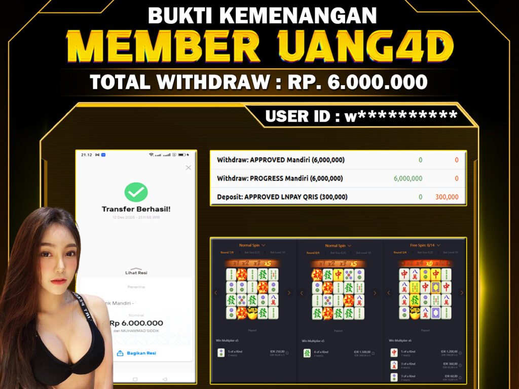 Jangan lewatkan kesempatan untuk meraih kemenangan besar. Daftar sekarang di UANG4D dan rasakan pengalaman bermain slot terbaik yang pernah ada! Putar gulungan, menangkan jackpot, dan jadilah bagian dari komunitas pemain sukses kami!