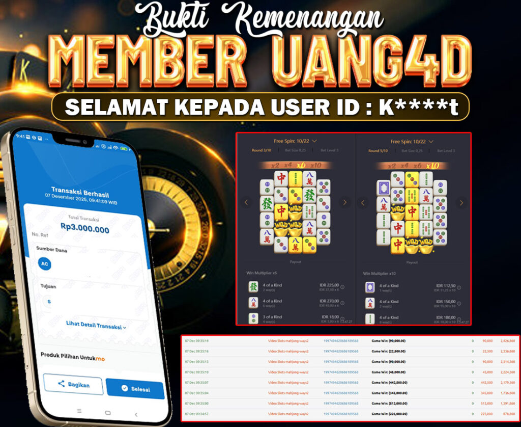 UANG4DJACKPOT SLOT MAHYONG WAYS (2) 07 DESEMBER 2025 , Jackpot Slot, Kemenangan Slot, Bukti Kemenangan Slot, Kemenangan Slot PG SOFT Play, Menang Slot online, Slot Gacor, Situs Aman Terpercaya, Withdraw Berapapun Pasti DI Bayar Tuntas, Maxwin Slot Online.