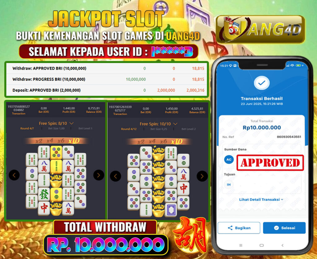 UANG4D – JACKPOT SLOT MAHYONG WAYS 2 23 JUNI 2025 , Jackpot Slot, Kemenangan Slot, Bukti Kemenangan Slot, Kemenangan Slot Pragmatic Play, Menang Slot online, Slot Gacor, Situs Aman Terpercaya, Withdraw Berapapun Pasti DI Bayar Tuntas, Maxwin Slot Online.