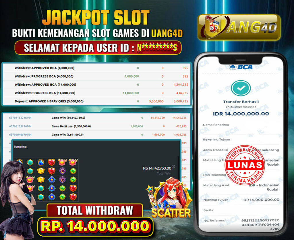 Jangan lewatkan kesempatan untuk meraih kemenangan besar. Daftar sekarang di UANG4D dan rasakan pengalaman bermain slot terbaik yang pernah ada! Putar gulungan, menangkan jackpot, dan jadilah bagian dari komunitas pemain sukses kami!