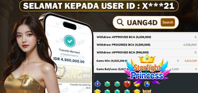 UANG4D JACKPOT SLOT STARLIGHT PRINCES 27 SEPTEMBER 2025 Kemenangan Slot, Bukti Kemenangan Slot, Kemenangan Slot Pragmatic Play, Menang Slot online, Slot Gacor, Situs Aman Terpercaya, Withdraw Berapapun Pasti DI Bayar Tuntas, Maxwin Slot Online.