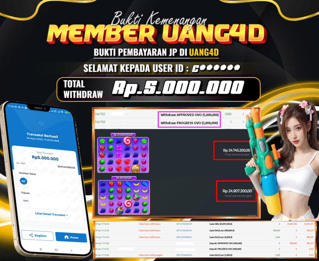 Jangan lewatkan kesempatan untuk meraih kemenangan besar. Daftar sekarang di UANG4D dan rasakan pengalaman bermain slot terbaik yang pernah ada! Putar gulungan, menangkan jackpot, dan jadilah bagian dari komunitas pemain sukses kami!