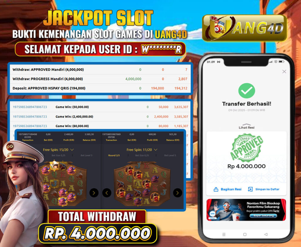 Jangan lewatkan kesempatan untuk meraih kemenangan besar. Daftar sekarang di UANG4D dan rasakan pengalaman bermain slot terbaik yang pernah ada! Putar gulungan, menangkan jackpot, dan jadilah bagian dari komunitas pemain sukses kami!