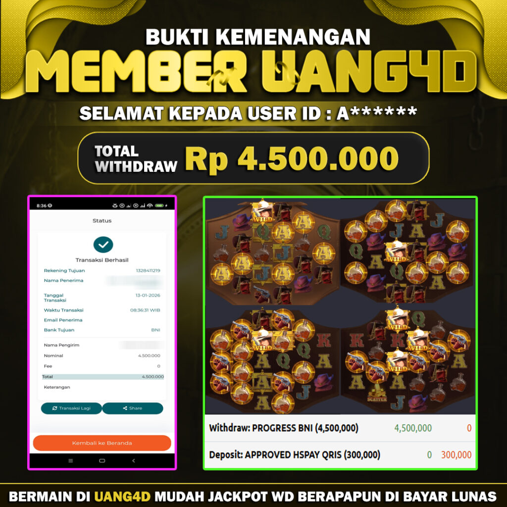Jangan lewatkan kesempatan untuk meraih kemenangan besar. Daftar sekarang di UANG4D dan rasakan pengalaman bermain slot terbaik yang pernah ada! Putar gulungan, menangkan jackpot, dan jadilah bagian dari komunitas pemain sukses kami!