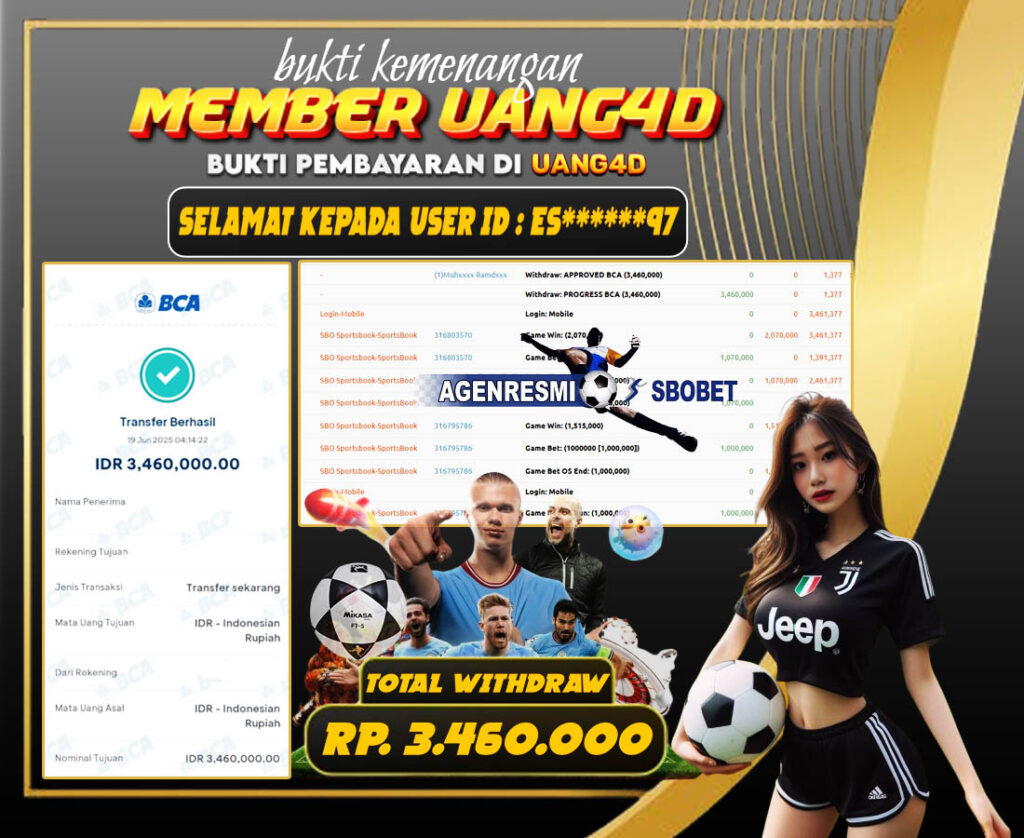 JACKPOT SPORTBOOK MAIN SBO SPORTBOOK 19 JUNI 2025, Jackpot Sportbook, Kemenangan Sportbook, Bukti Kemenangan Sportbook, Kemenangan Sportbook SBO Sportbook, Menang Sportbook Online, Sportbook Akurat, Situs Aman Terpercaya, WD Berapapun Pasti DI Bayar Tuntas, Jackpot Sportbook.