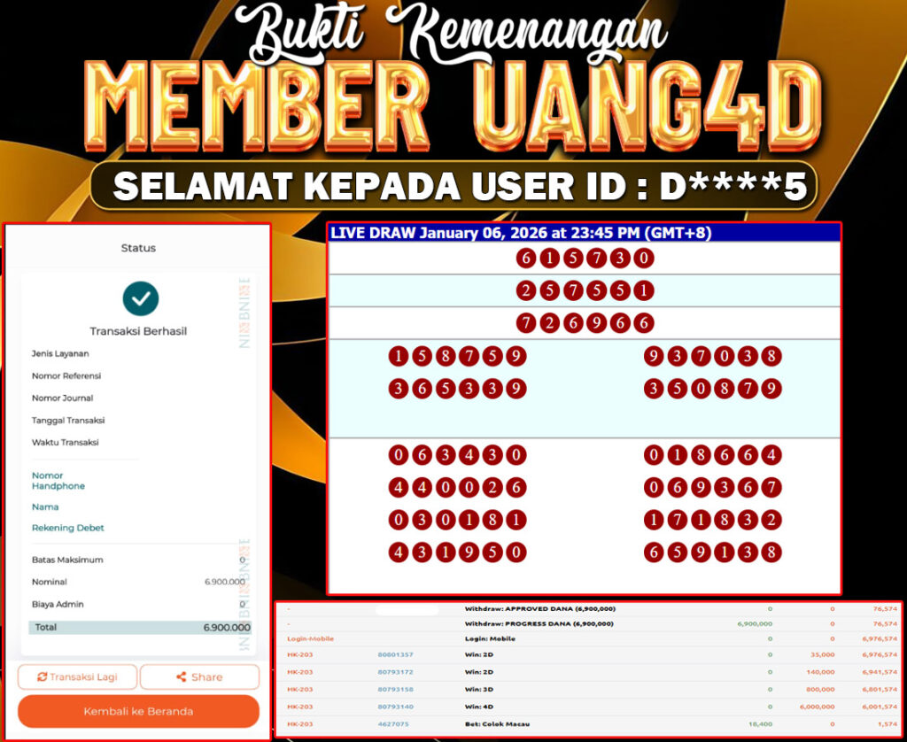 TOTAL KEMENANGAN : Rp. 6.900.000,-
