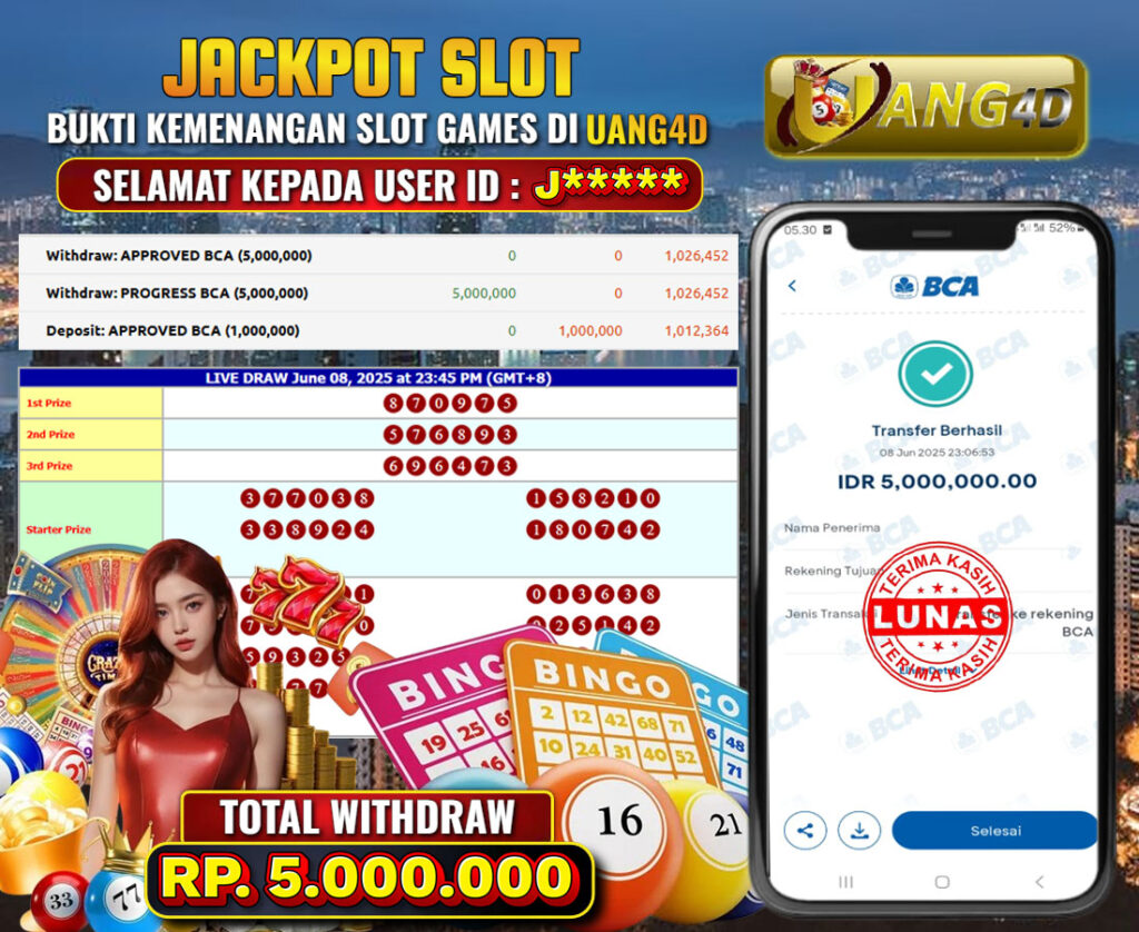 Setiap hari, member UANG4D berhasil meraih jackpot besar dari berbagai provider togel ternama yang kami sediakan, seperti Sydney, Singapore, Hongkong dan masih banyak lagi. Kami secara rutin menampilkan bukti screenshot atau rekapan kemenangan yang berhasil diraih, mulai dari kemenangan ratusan ribu hingga puluhan juta rupiah. Semua slip kemenangan ini kami hadirkan untuk membuktikan bahwa di UANG4D, peluang menang itu nyata.