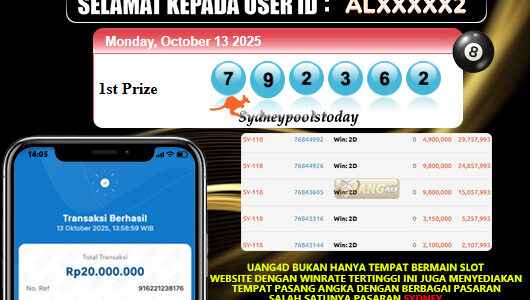 JACKPOT TOGEL MAIN SYDNEY 13 OKTOBER 2025, Jackpot Togel Akurat, Kemenangan Togel, Bukti Kemenangan Togel, Kemenangan Togel Sydney, Menang Togel online, Togel Gacor, Situs Aman Terpercaya, WD Berapapun Pasti DI Bayar Tuntas, Maxwin Togel Online.