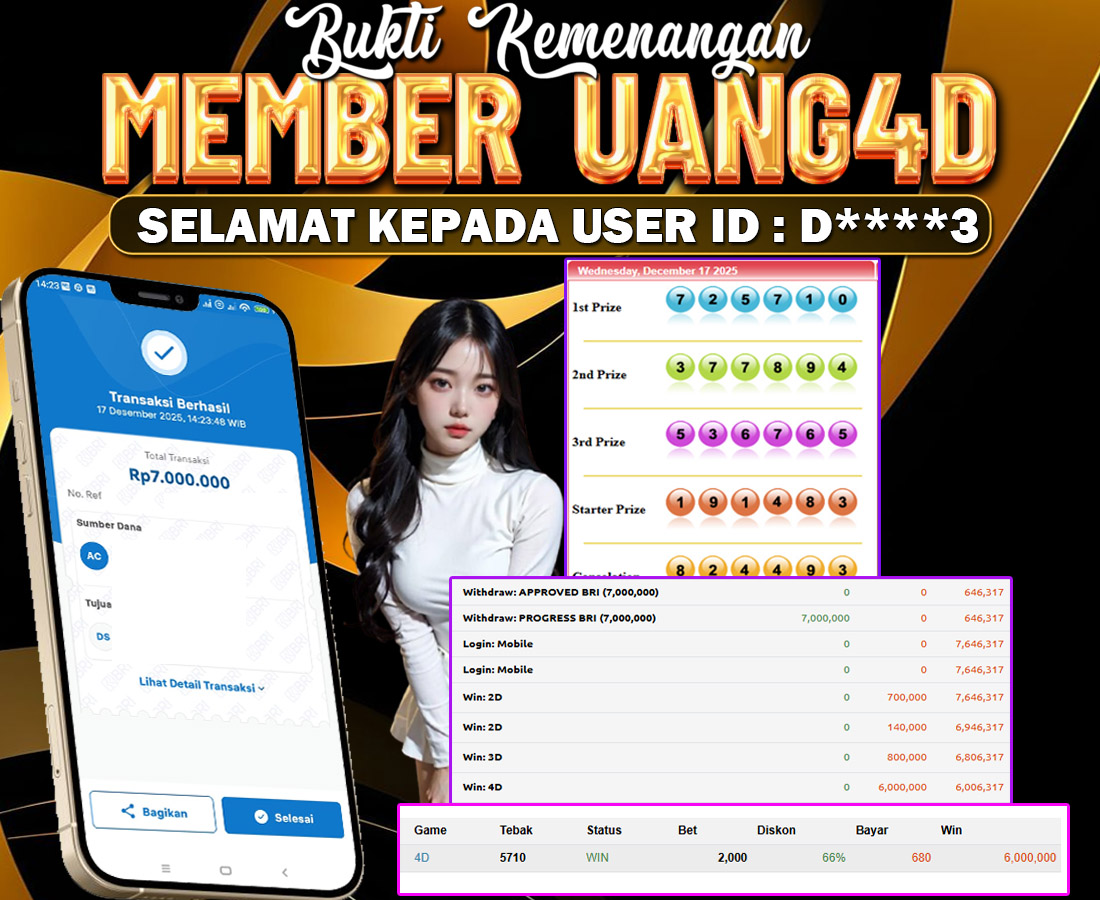Selamat Kepada Member Yang Berhasil Mendapatkan Jackpot Dipermainan Togel Hari Ini, Berikut Bukti SS Jackpot Member Di Situs UANG4D