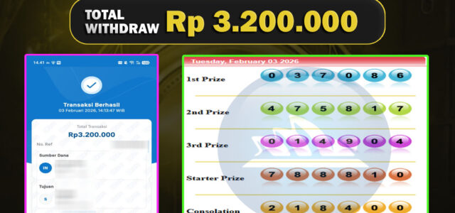 TOTAL KEMENANGAN : Rp. 3.200.000,-